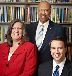 County Commissioners Kathi Cozzone (from left), Terence Farell, and Ryan Costello applaud the county’s selection for a state block-grant program.