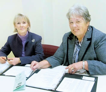 Diane P. Mulhearn (left), the Volunteer Guardianship Program coordinator, and Nancy Breuer, Assistant Orphans’ Court Administrator, review files for the program.