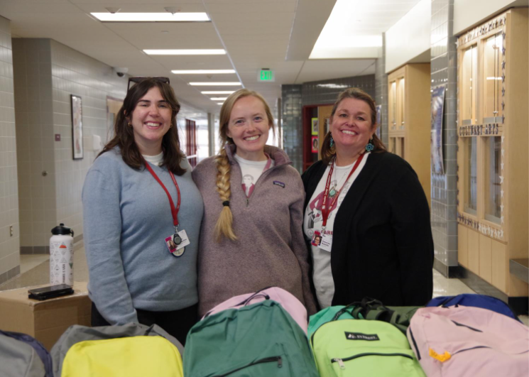 CIU staff members greet families at the Early Childhood Resource Fair held at TCHS Pickering. The team helped distribute backpacks and supplies to families attending the event.