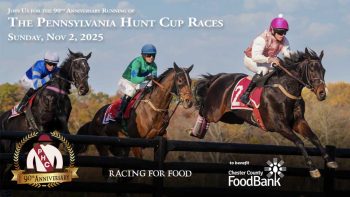 The Pennsylvania Hunt Cup (Pennsylvania Hunt Cup racecourse, Newark Road, Unionville, 484-888-6619, http://pahuntcup.org) is one of the oldest and most respected equestrian events in the Mid-Atlantic region. This year, the Hunt Cup will celebrate its 90th anniversary on November 2.The equestrian competition will feature four open races sanctioned by the National Steeplechase Association. Three of them will feature races over fences and one will be a race on the flat.
