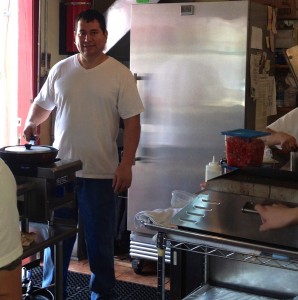 Co-owner Juvenal Gonzalez, who does double duty as grill cook and ice-cream creator, gets ready for the lunch rush at Michoacana Grill.